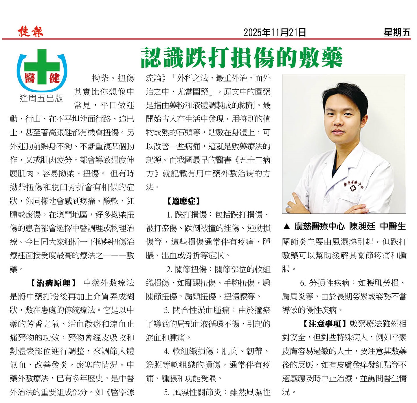具有一年臨床經驗,注重肩、腰、膝痛證治療和男性養生保健
