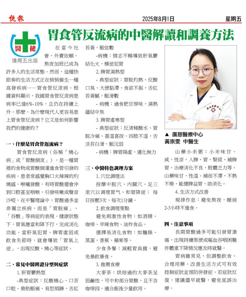 胃食管反流病的中醫解讀和調養方法