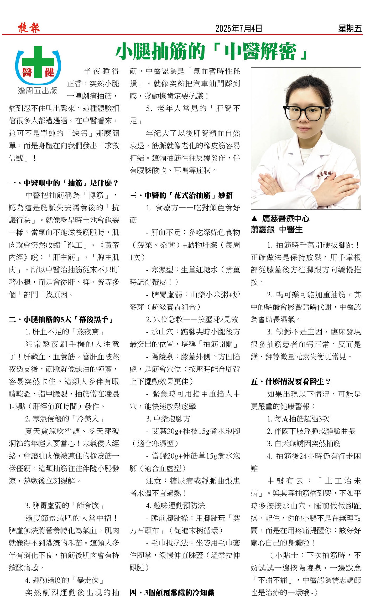 小腿抽筋的「中醫解密」